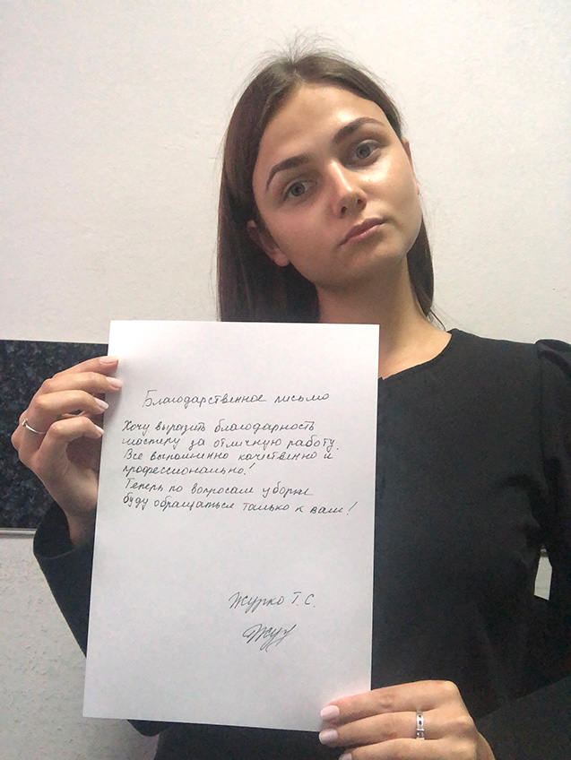 Исполнитель ездит на заказы по уборке в команде опытных домовят и проходит еще один инструктаж.